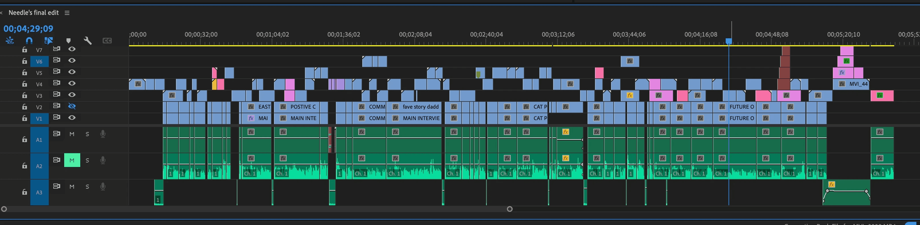 These aren't the only issues we ran into once we got into the editing room. Due to poor lighting conditions where we filmed our interview, all of the interview talking head footage we collected was low enough quality that it was entirely unuseable for our film. Combined with aspects of the filming location being less photogenic than we were initially expecting, we were left with much less usable footage for B roll than we needed.